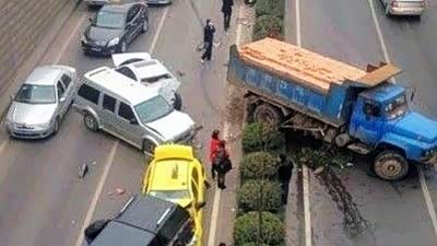 恶性车祸!重卡冲毁防护栏酿多车相撞