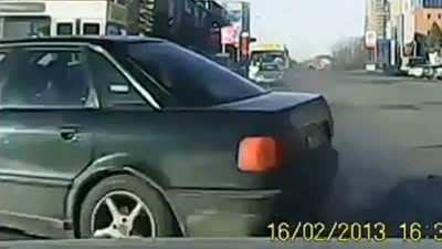 反应够快 幸运俄罗斯车友躲过致命车祸