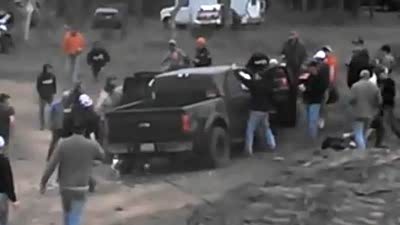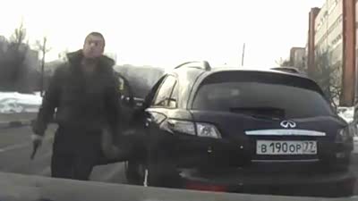 冲动!俄罗斯车友拔枪斗气不慎溜车