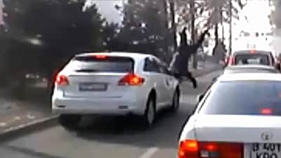 脾气够冲 俄罗斯街头驾车斗气冲突实拍