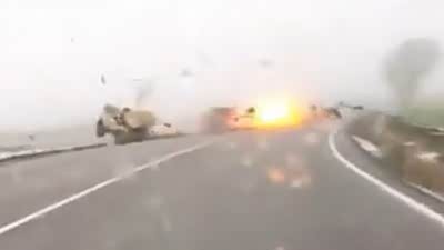 当场起火爆炸 实拍超惨烈失控对撞事故