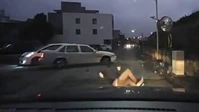悲剧了 实拍轿车发动机盖掀起酿险情