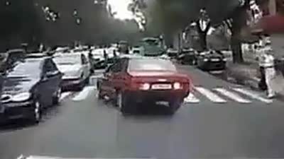 惊险瞬间 女子横穿马路惨被轿车撞倒