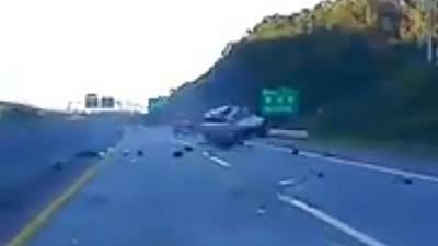 遍地狼藉 实拍SUV碰撞侧翻连滚数周