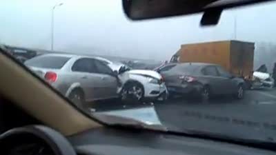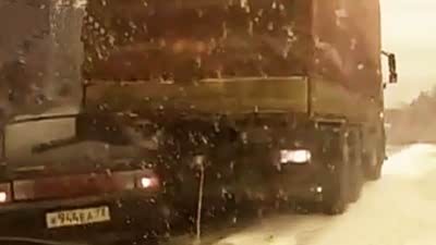 玩命式驾驶 汽车雪地跨线超车险酿惨剧