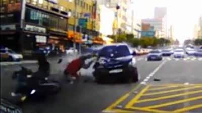 太恐怖!行人过马路惨遭闯灯轿车秒杀