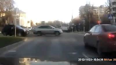 恐怖瞬间!路口致命车祸三行人躲过一劫