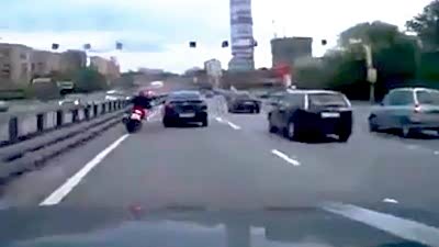 肯定很疼!实拍摩托车被别惨撞护栏