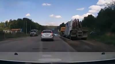 惊险!实拍司机驾重卡走神险酿事故