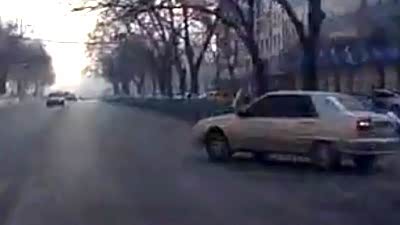 天旋地转!实拍小轿车街头失控连撞两车