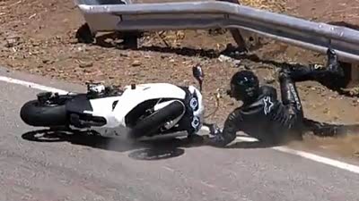 还得瑟吗?实拍疯狂摩托跌倒惊险一瞬