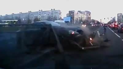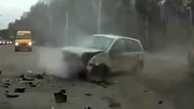 走神了!实拍轿车翻滚人被甩出惊险一幕