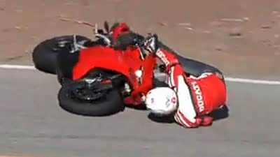 马失前蹄!杜卡迪848过弯摔车直奔草丛