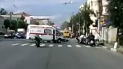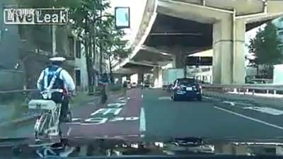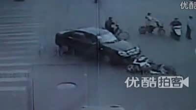 摔得不轻!实拍轿车拐弯撞飞骑车女
