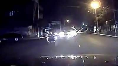 恐怖一幕!实拍两人过马路惨遭撞飞