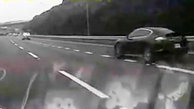 当场撞翻!宝马M3雨中高速失控惨剧实拍