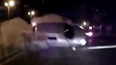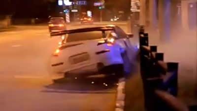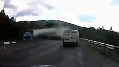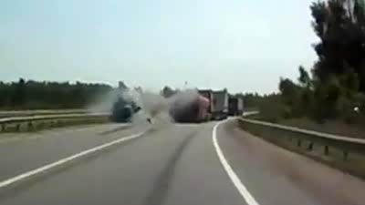 惨烈撞击!油罐车超车甩尾横扫对向小车