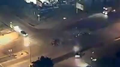闯红灯惹祸!监控实拍十字路口夜间车祸