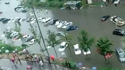 来北京看海!京城突降暴雨车辆惨遭淹没