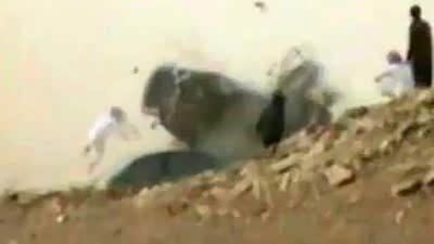 人被甩出车外!失控车冲进人群腾空翻滚