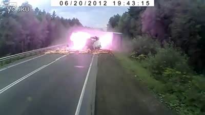 死神在招手!开车走神迎面撞上大卡车