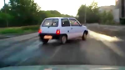 技术不行!庞迪克GTO弯道失控撞翻摩托