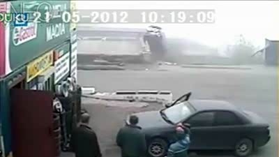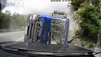 心脏病者慎入!恐怖卡车冲出护栏翻下桥