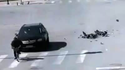 责任该归谁!骑摩托车过马路惨遭撞飞