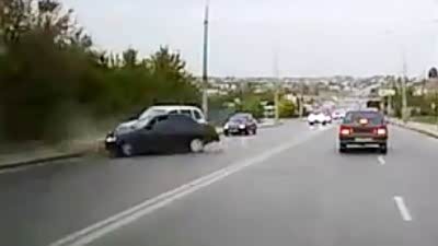 幸亏车速慢!莽撞转向遭后车猛烈撞击