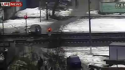 进退两难!执意开车过铁轨悲剧被卡住