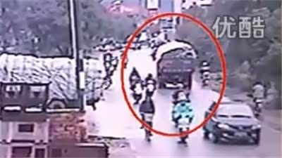 又酿惨剧!电动车超越大货摔倒遭碾压