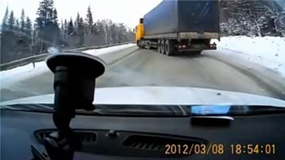 司机是高手!拖挂货车雪天打滑蛇形漂移