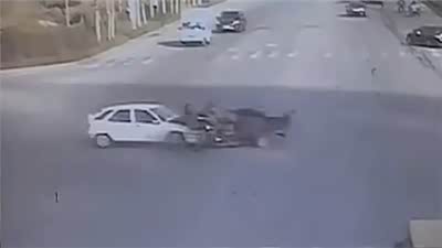 抢行惹大祸!十字路口冲黄灯两车惨撞