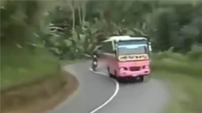 真是悲剧啊!摩托车为超大客逆行被撞惨