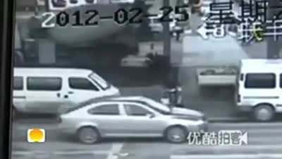 男子骑车过马路遭卡车碾压竟奇迹生还