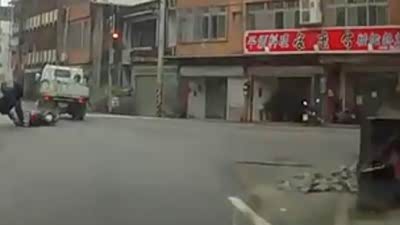 闯红灯!电动车路口撞车骑车人当场撞飞