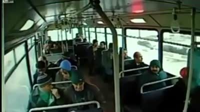 乘客很慌张!实录货车暴力冲撞巴士全程