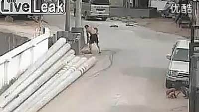 飞来横祸!路灯杆被撞倒险砸倒霉车