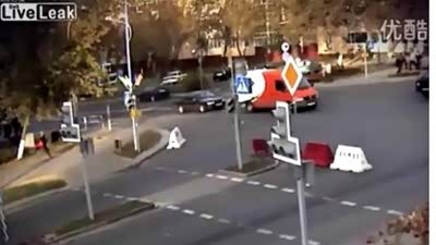 幸运哥!路口恐怖车祸人被抛出车外没事