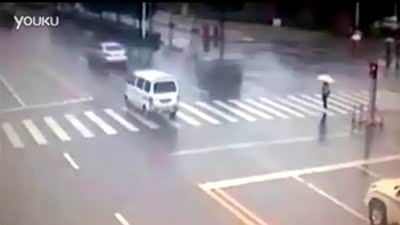 摩托车猛撞左转SUV 骑手飞上汽车车顶