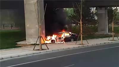 恐怖!实拍奔腾B50榴乡桥下碰撞后自燃