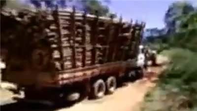太大意了!超载木材卡车乡间小路翻车