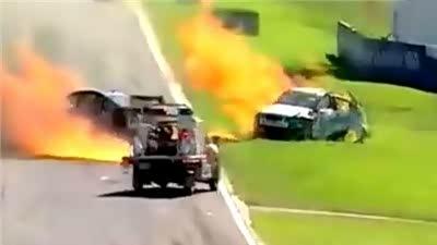 与死神擦肩而过 V8房车赛赛车相撞起火