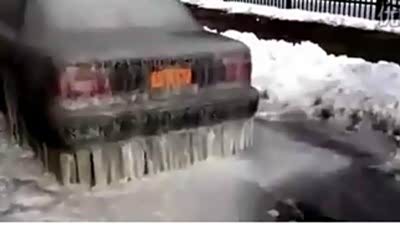 天然的冰雕 冰雪天气致小轿车被冷冻