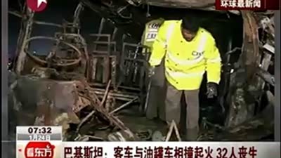 巴基斯坦客车司机瞌睡撞油罐车致32人死