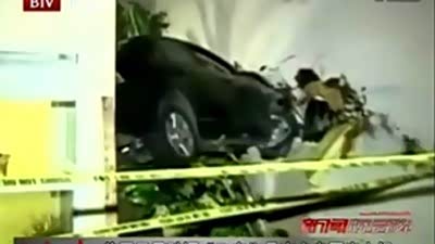 美国男子醉酒飞车 竟悬空卡在两房中间