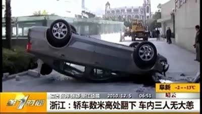 万幸无大恙!女司机驾车从数米高处翻下