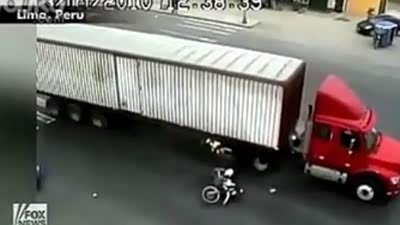 擦着脑袋驶过 女骑警从大货车轮下捡命