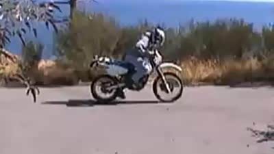 可惜没耍好!车友摩托烧胎不慎翻下山沟