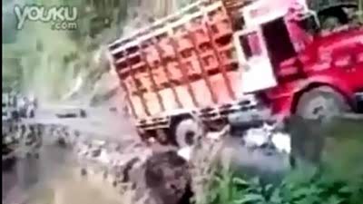 压断盘山公路!车友实拍卡车坠崖瞬间